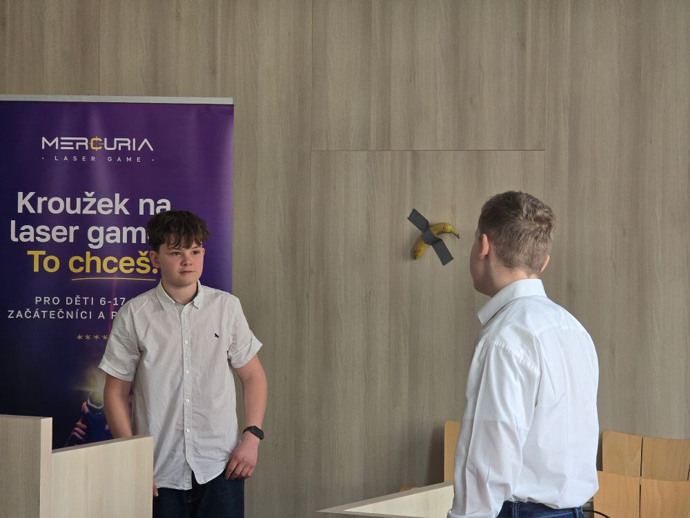 ŽeŽi přímo v aule předvedli vlastní současné umění inspirované známým banánem Comedian. S týmem Fishus jsme se na chvíli vrátili do pravěku mezi dinosaury.