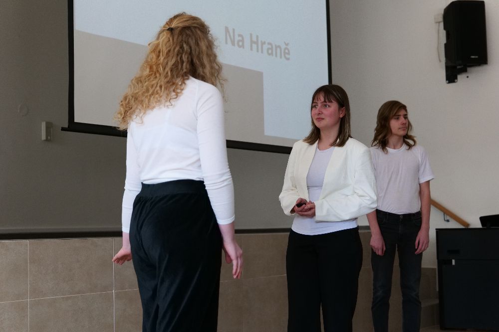 Tým HRANIČÁŘI z Gymnázia Olomouc-Hejčín vtáhl publikum do děje pomocí scénky. Zabývali se tím, co je přijatelné. Připomněli také, že svoboda jednoho končí tam, kde začíná svoboda druhého.